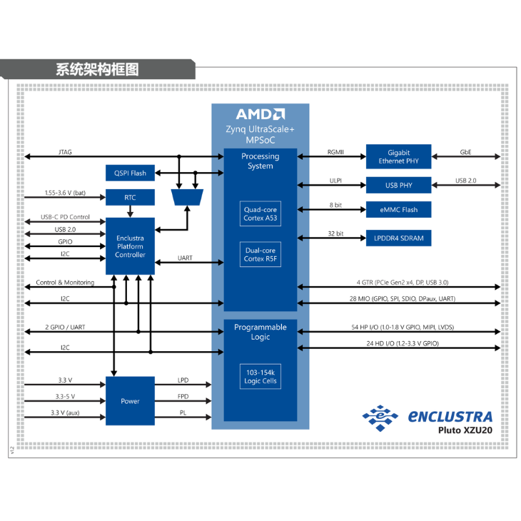 Pluto XZU20:为便携应用重新定义 FPGA 性能。这款 30 × 30 mm 的超紧凑型系统级模块,将 AMD InFO 封装的 MPSoC Zynq™ UltraScale+™ 与 LPDDR4 SDRAM、eMMC 闪存、四通道 SPI 闪存、千兆以太网 PHY 及 USB 3.0 无缝融合,在极小空间内构建完整的嵌入式处理生态。专为嵌入式智能而生,Pluto XZU20 在传感系统、医疗设备、机器人、远程作业及工业自动化领域表现出色。其卓越的能效表现与 AMD MPSoC 的成熟技术,确保在最具挑战性的环境中稳定运行。
